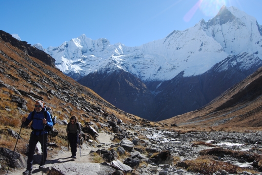 También conocido como Santuario de los Annapurnas, es un maravilloso itinerario hasta el corazón de la décima montaña más alta del mundo. La ruta al campo base es adecuada para cualquier persona acostumbrada a caminar por la montaña.
